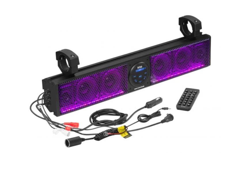 Weatherproof 26 inch IPX5 Rated ATV/UTV Soundbar Audio System with Bluetooth Audio Streaming and Built-in Class A/B Amplifier