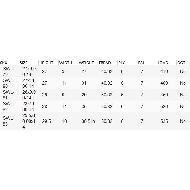 The Swamp Lite ATV tire, available in a 6-ply rating, raises the standard of excellence in mud, snow, and hard-pack.  Â