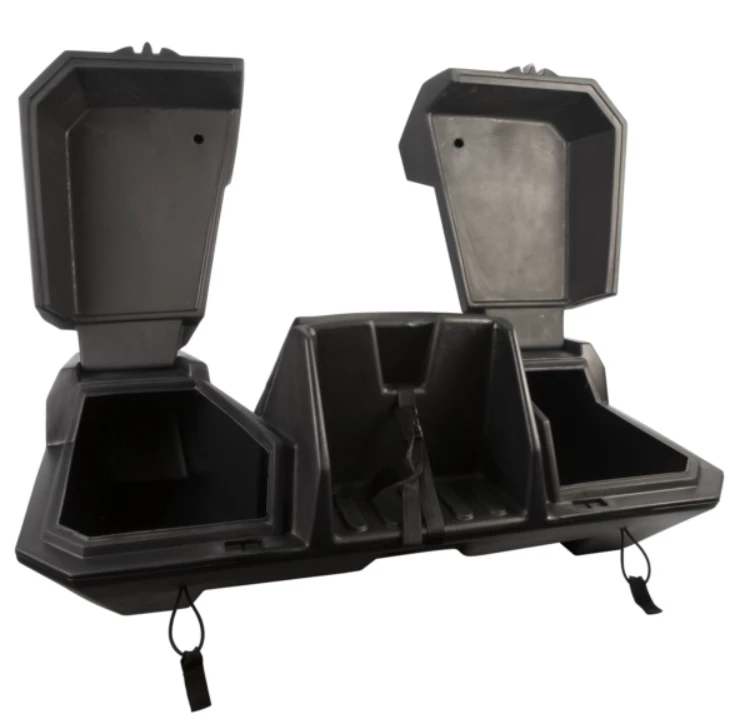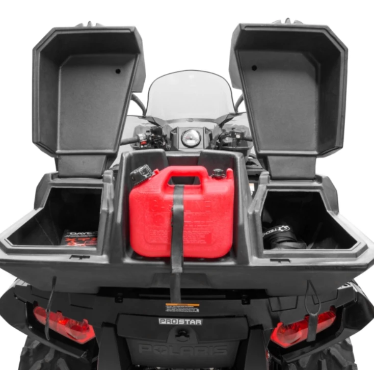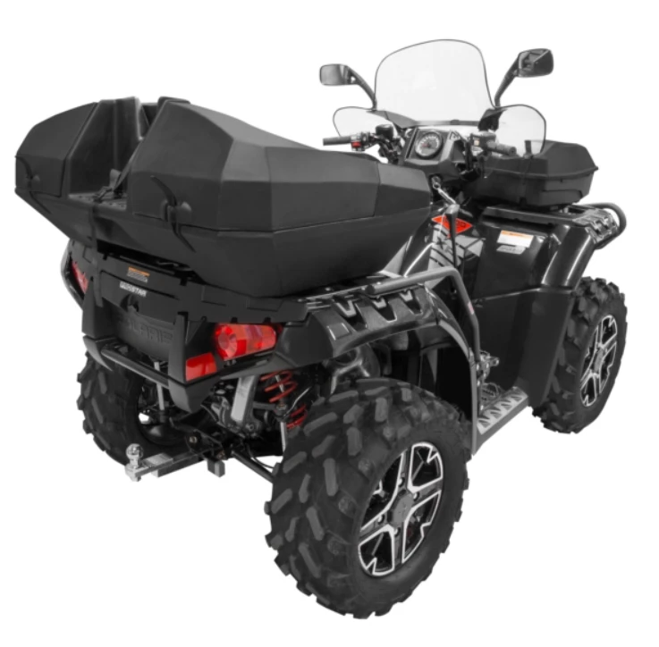 The Kimpex OUTBACK trunk has been a staple in the ATV industry for years, tested and proven over and over. The main storage area is molded as a single piece for strength and long-term durability. A simple but effective elastic strap secures the lids. Comfortable rear seat to kick back and enjoy a break. Rear exterior storage area for a small gas can or cooler with a built-in securement strap.