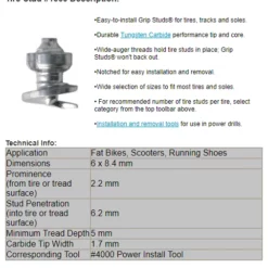 Grip Studs Grip Stud Tungsten Carbide Screw In Winter / Ice Traction Stud