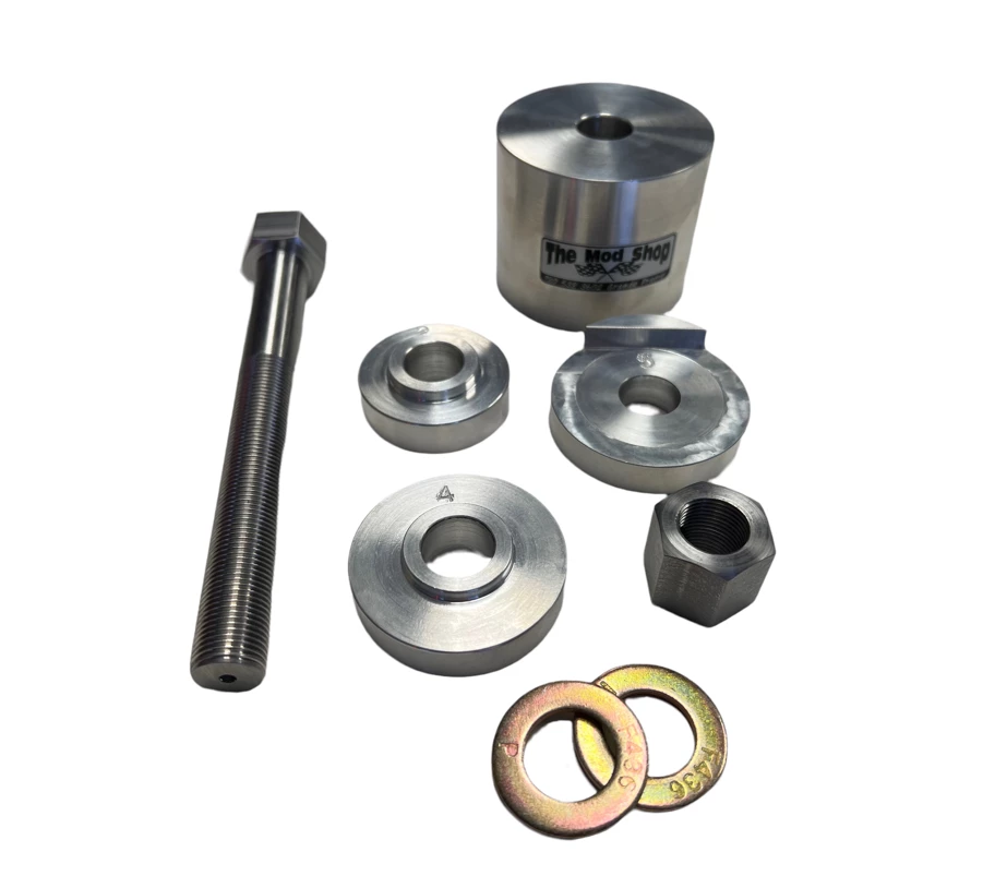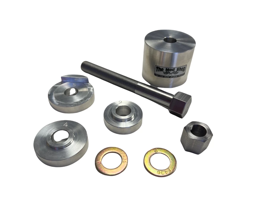 The Mod Shop wheel bearing removal/installation tool makes changing your Can-Am Outlander wheel bearings a breeze. Save time and money with this easy-to-use tool. No need for a press or to take a chance damaging your expensive new wheel bearings by hammering them in. A great addition to any service shop, allowing you to improve efficiency and profit. Machined in Canada from high-quality steel and aluminum.